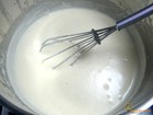 Do rozohriateho masla postupne prisypávame preosiatu múku a dôkladne miešame. Do zmesi múky a masla postupne prilievame studené mlieko a metličkou šľaháme do hladkej zmesi. Varíme približne 10 - 15 minút za stáleho miešania. Nakoniec dochutíme soľou, bielym korením a strúhaným muškátovým orieškom.