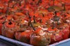 Rotoc dajte spoločne so zemiakmi na tanier a zalejte paradajkovou omáčkou. Papričky zakryjeme syrom mozzarella a parmezánom.